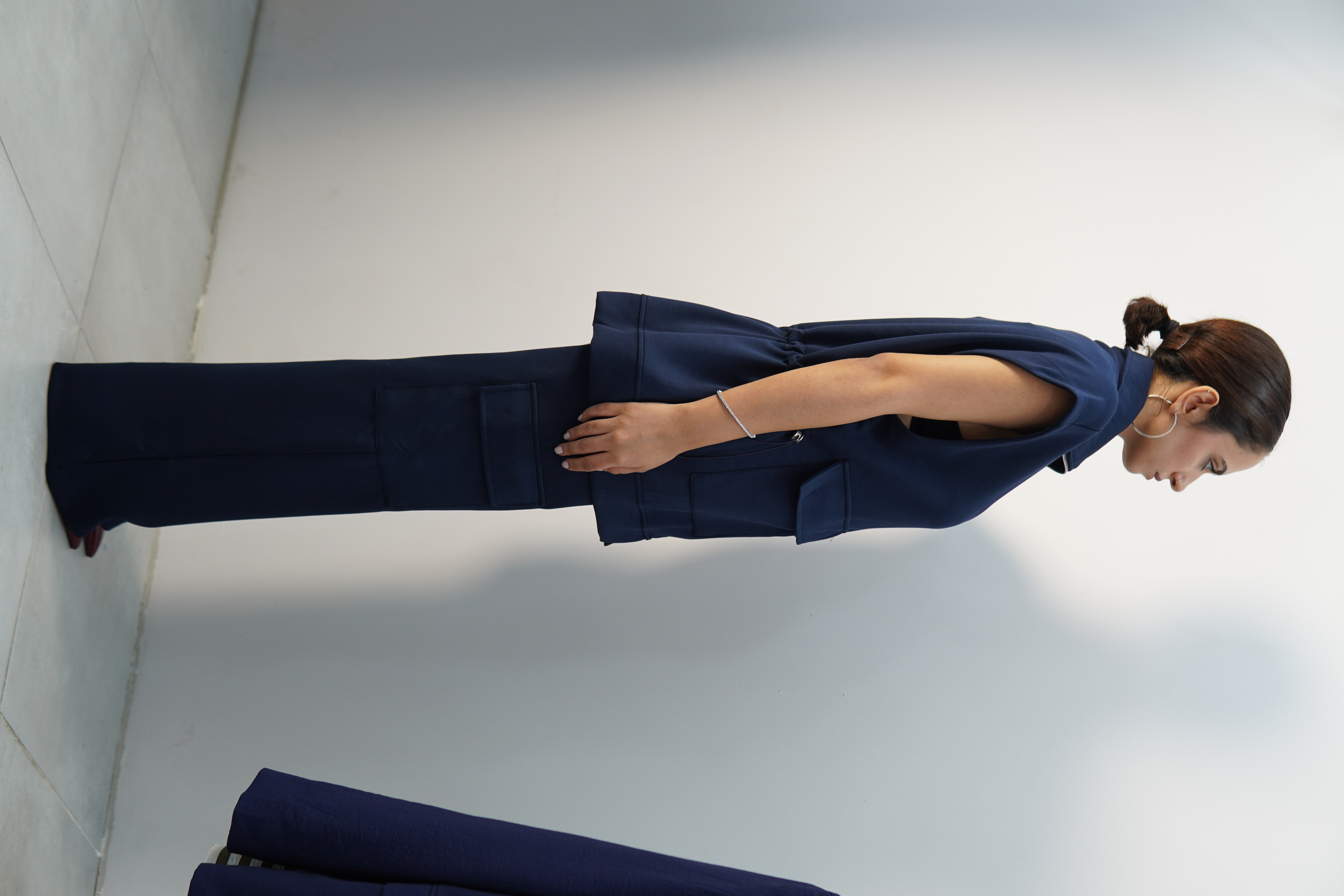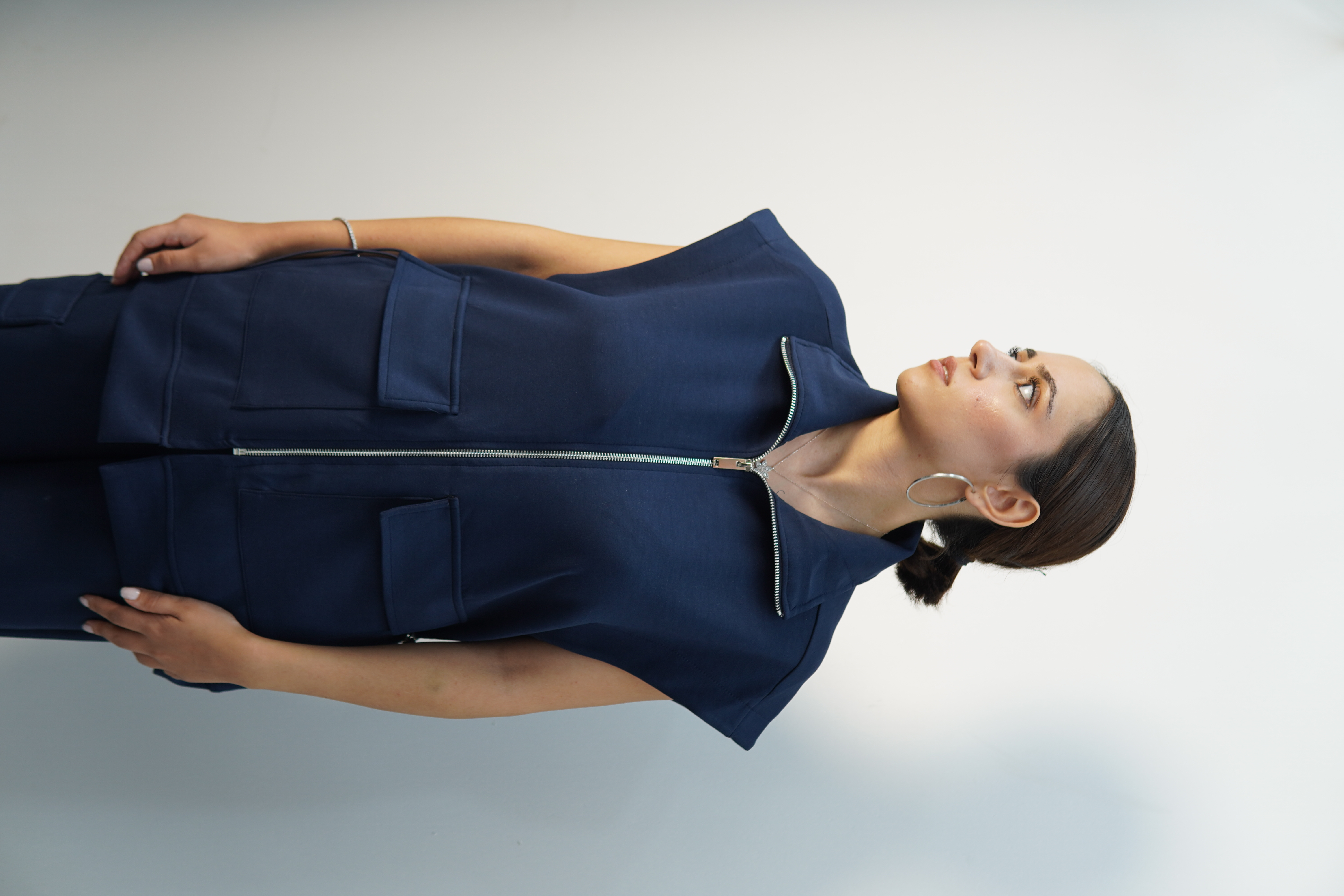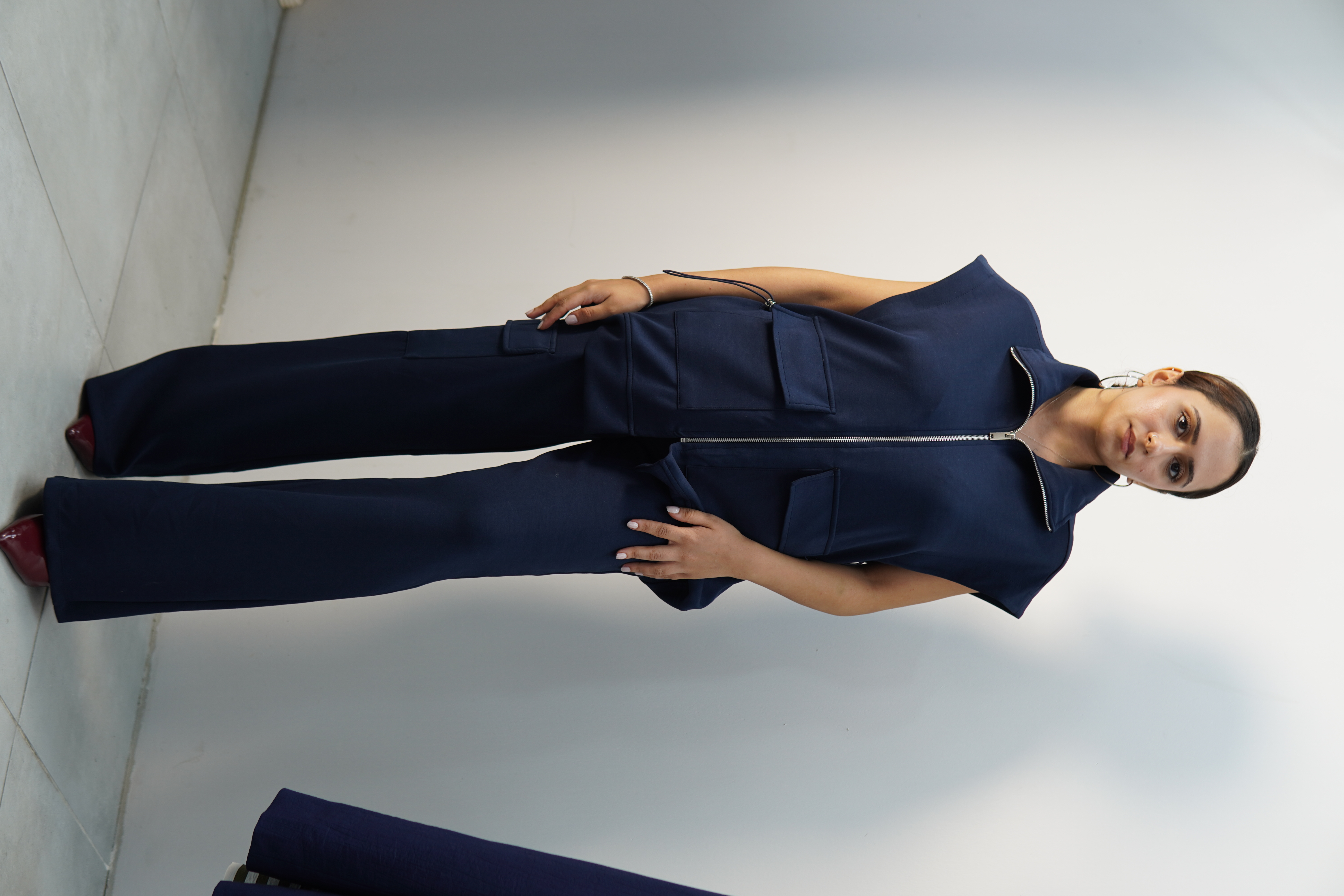 Fermuarlı Yelekli Lacivert Takım | Zahidane Butik