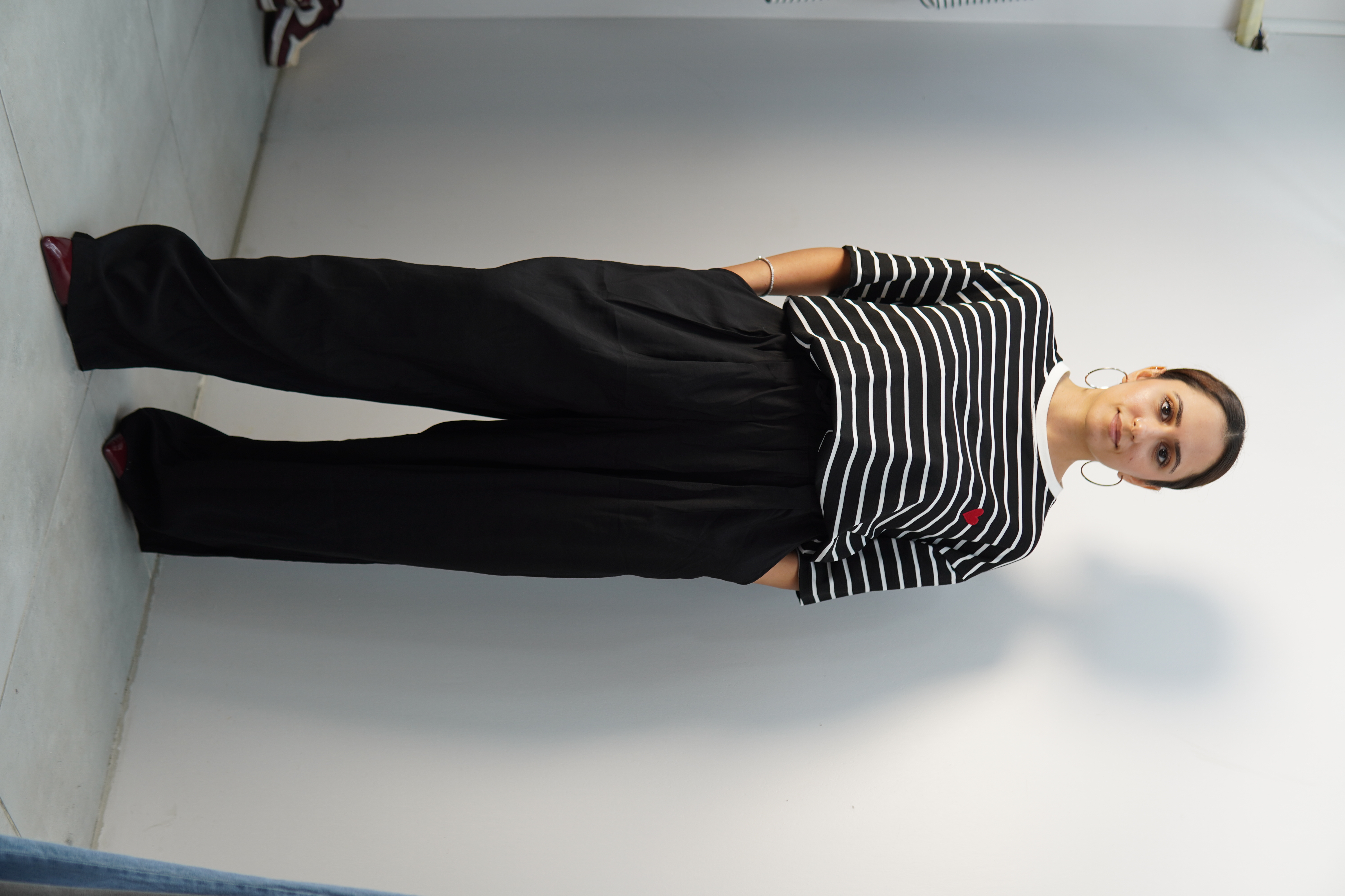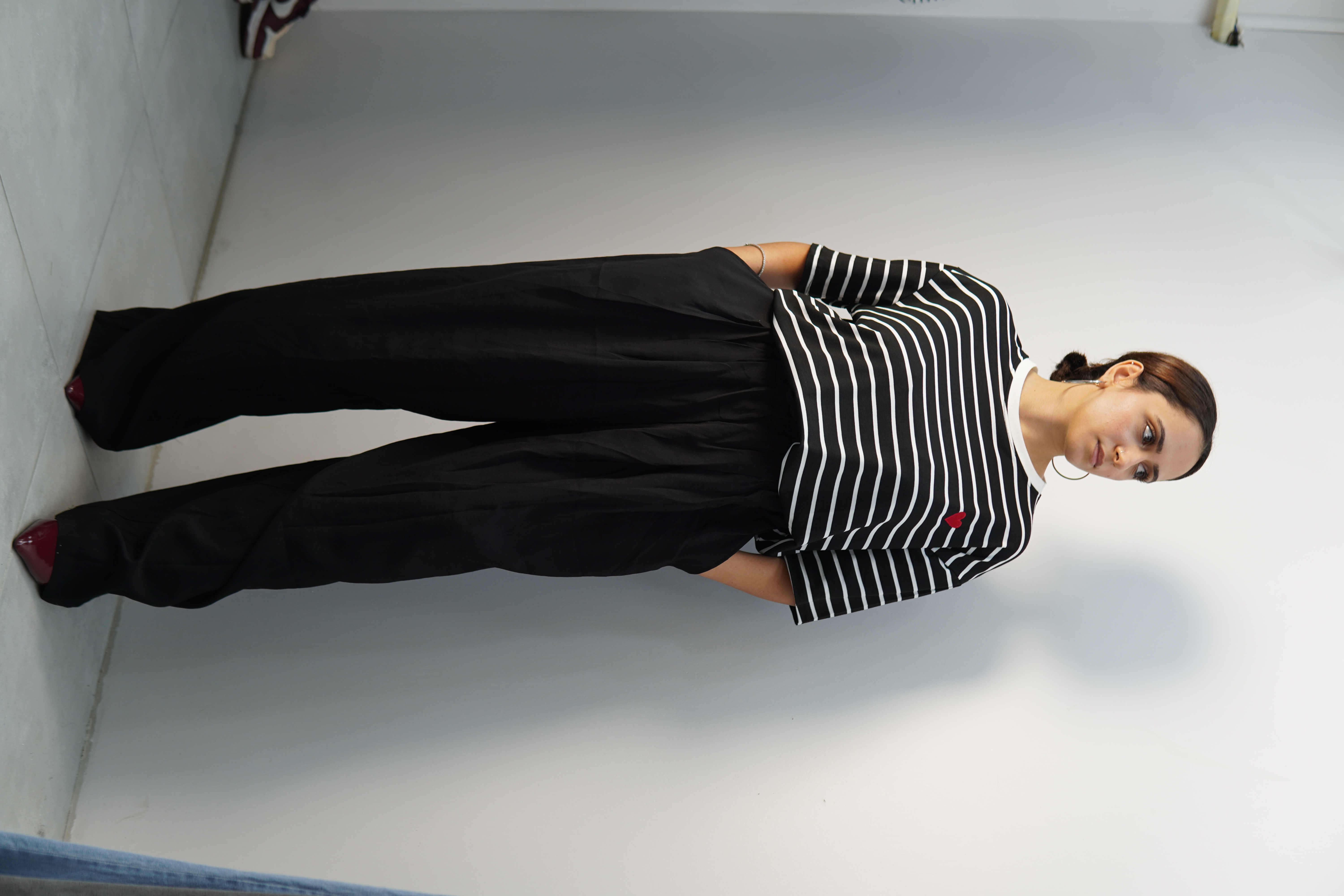 Kalp detaylı beyaz çizgi detaylı siyah tişört