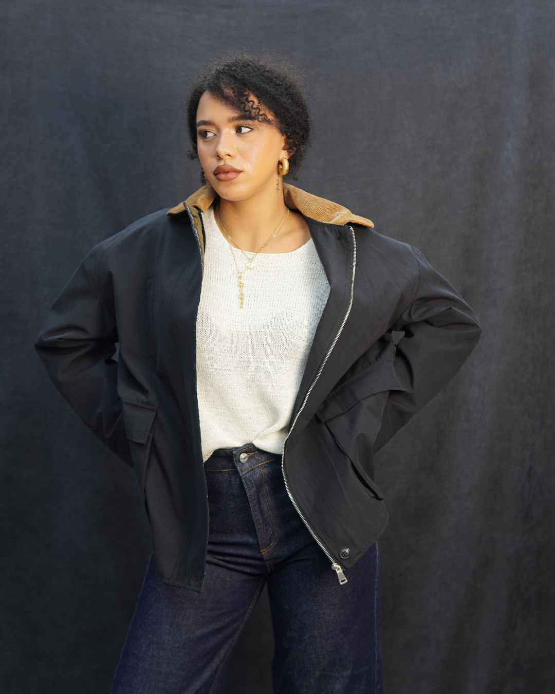 krem rengi ceket kahverengi yakal