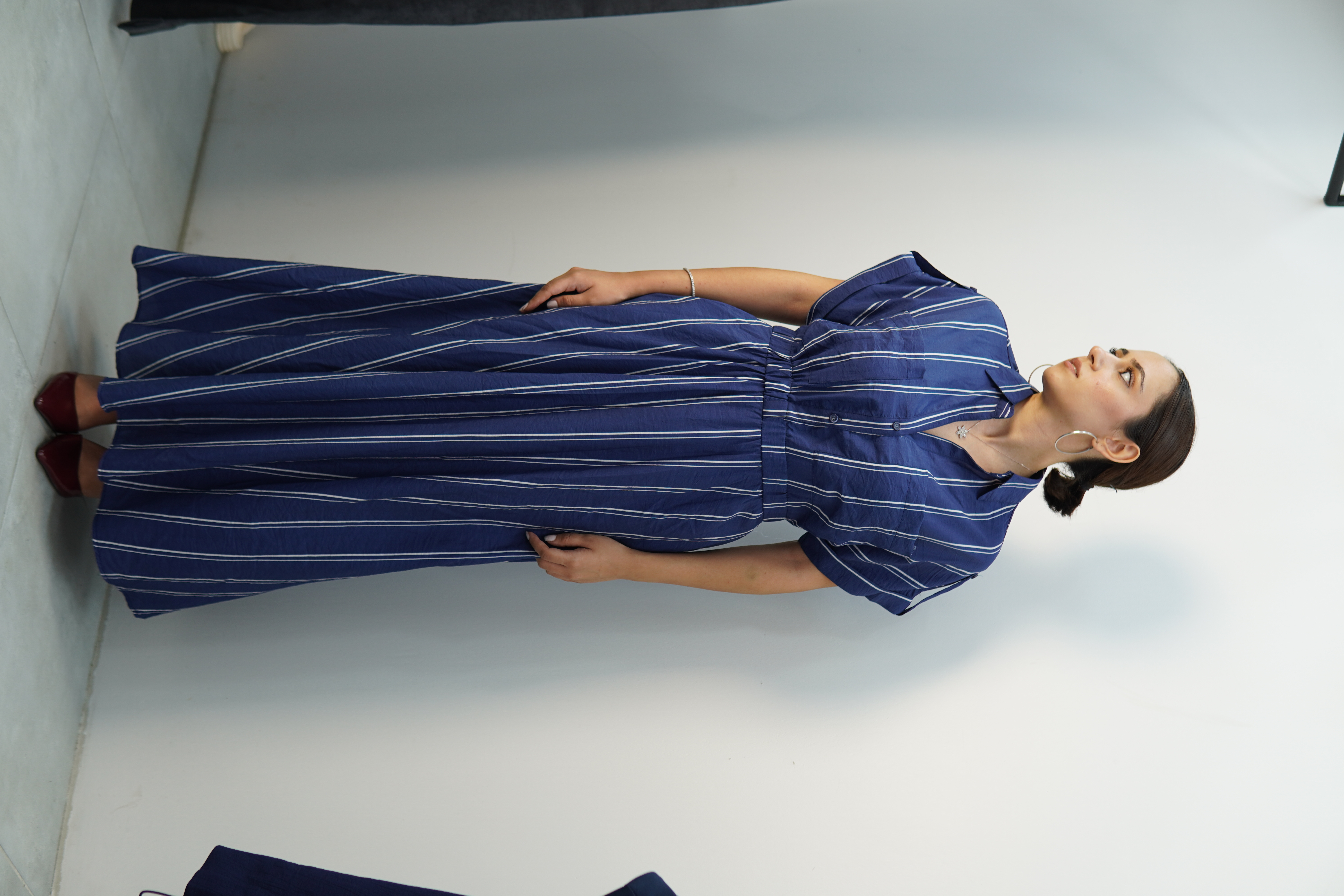 Lacivert Beyaz Çizgi Detaylı Elbise | Zahidane Butik