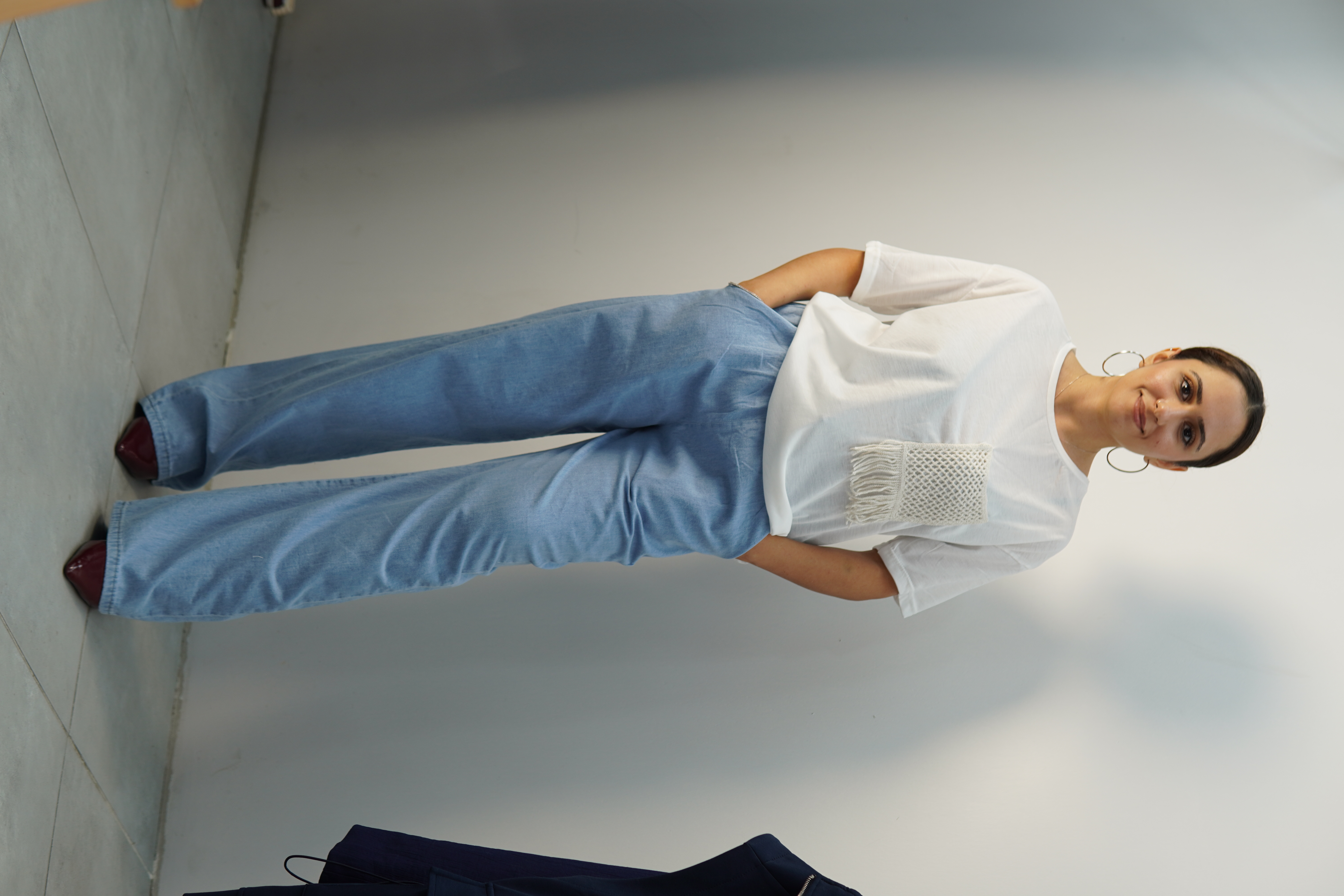 Mavi bol paça pantolon