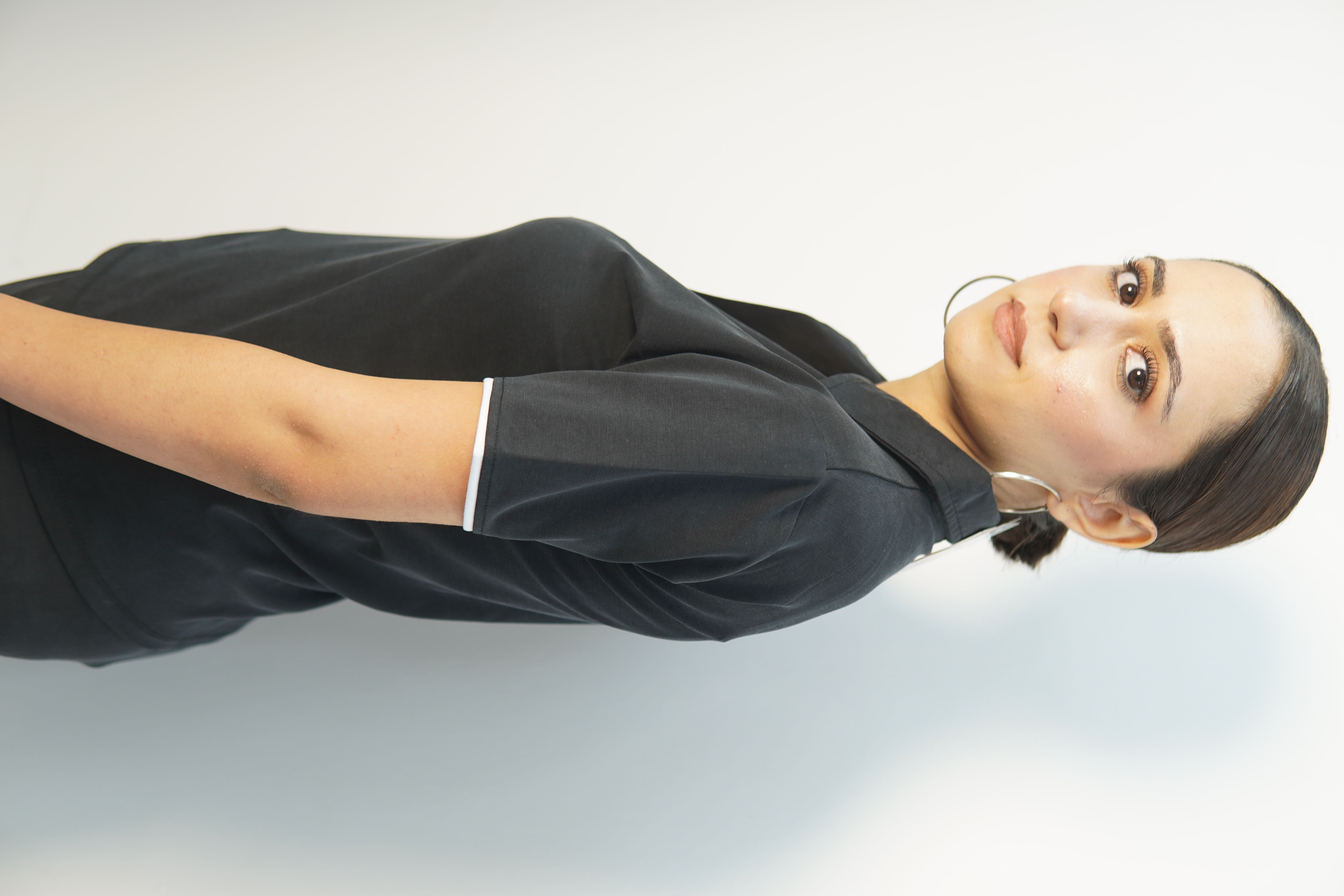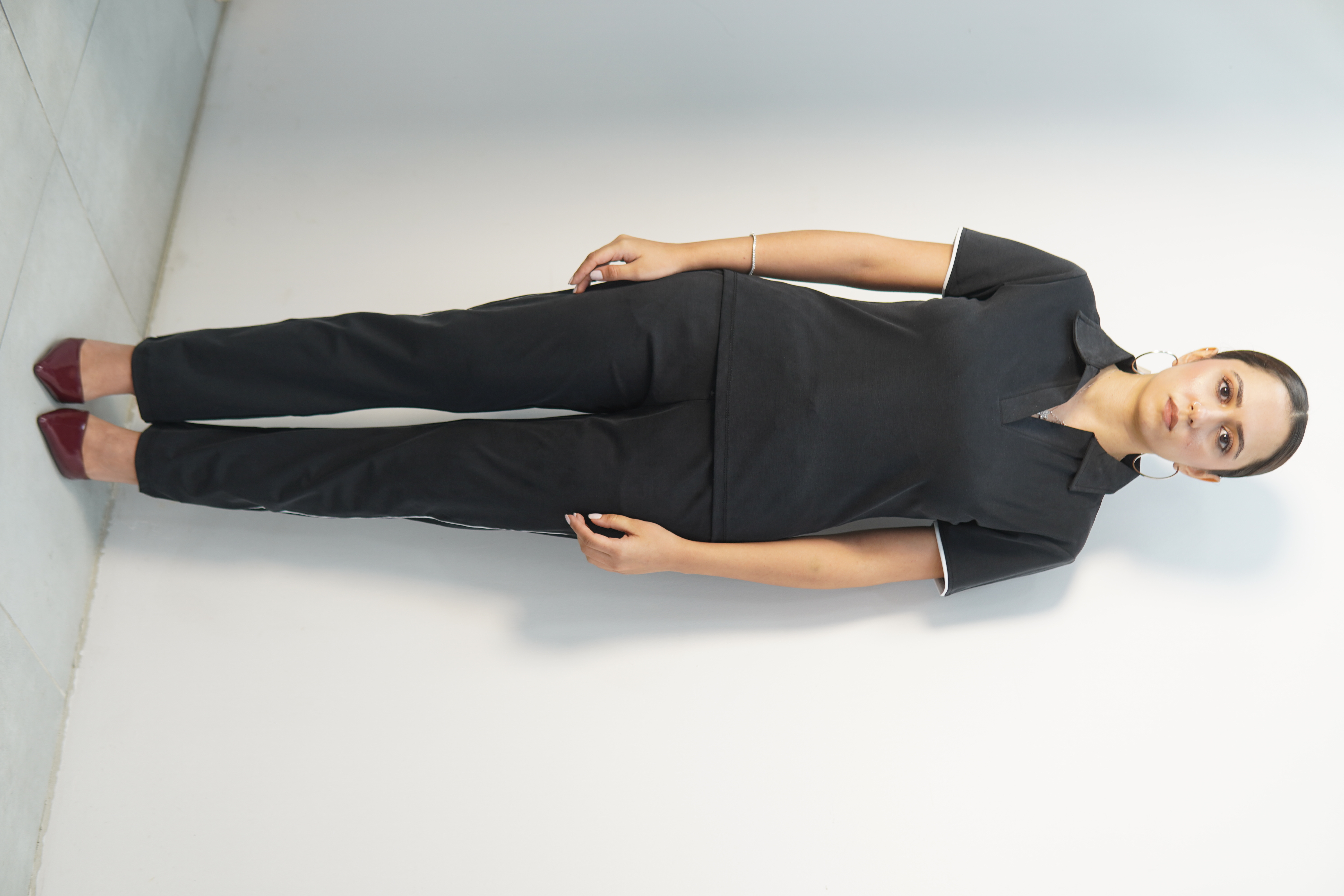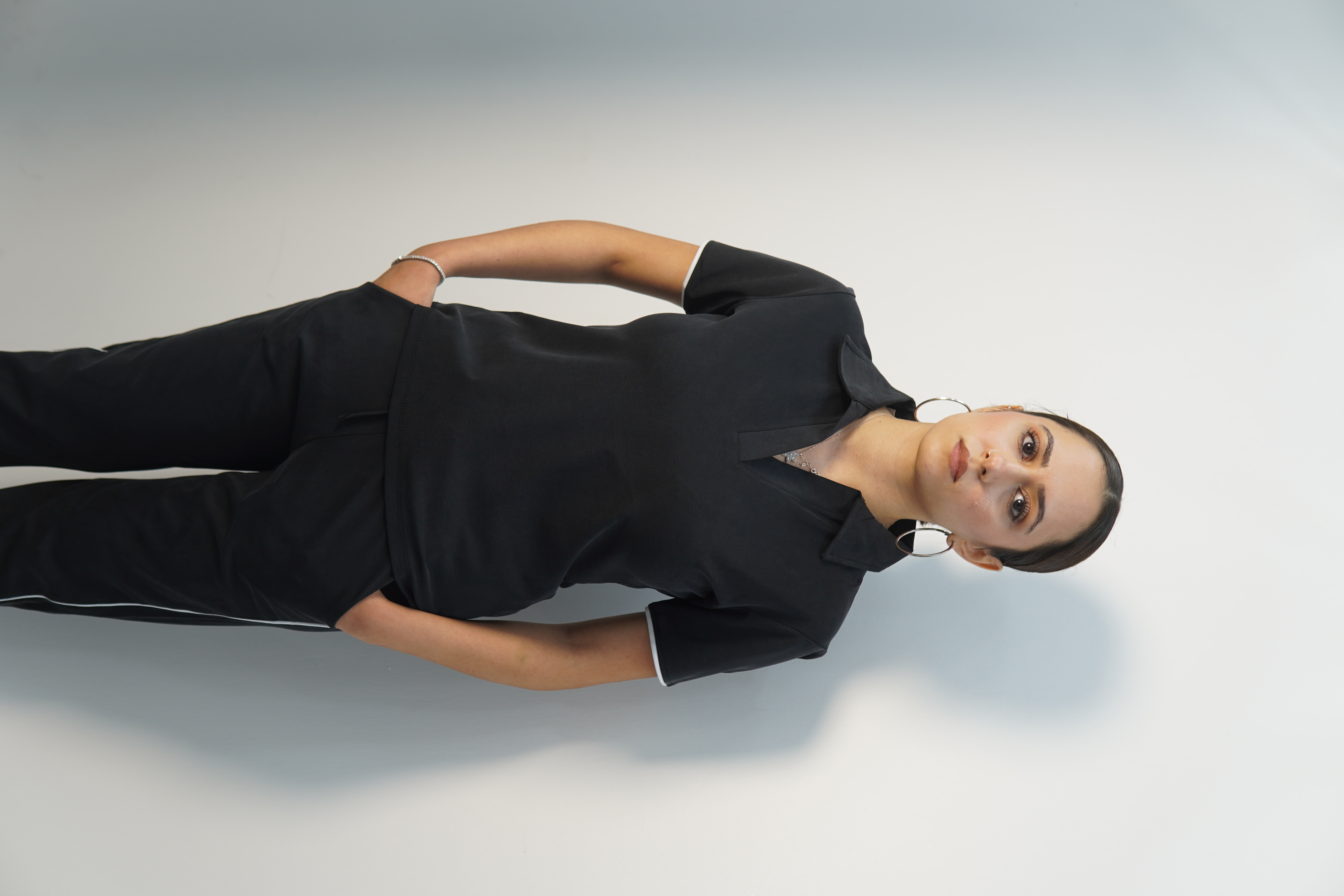Şıklığı ve rahatlığı bir arada sunan bu siyah alt-üst takım, günlük kullanım ve iş hayatı için ideal bir seçimdir. Üst kısmında sade bir t-shirt, alt kısmında ise yanlarda beyaz çizgi detaylı pantolon yer alır. Modern ve minimal tasarımı sayesinde hem ofis kombinlerinde hem de günlük stilinizde rahatlıkla tercih edebilirsiniz. Yumuşak kumaş dokusu gün boyu konfor sağlarken, zarif çizgi detayları spor-şık bir görünüm kazandırır.