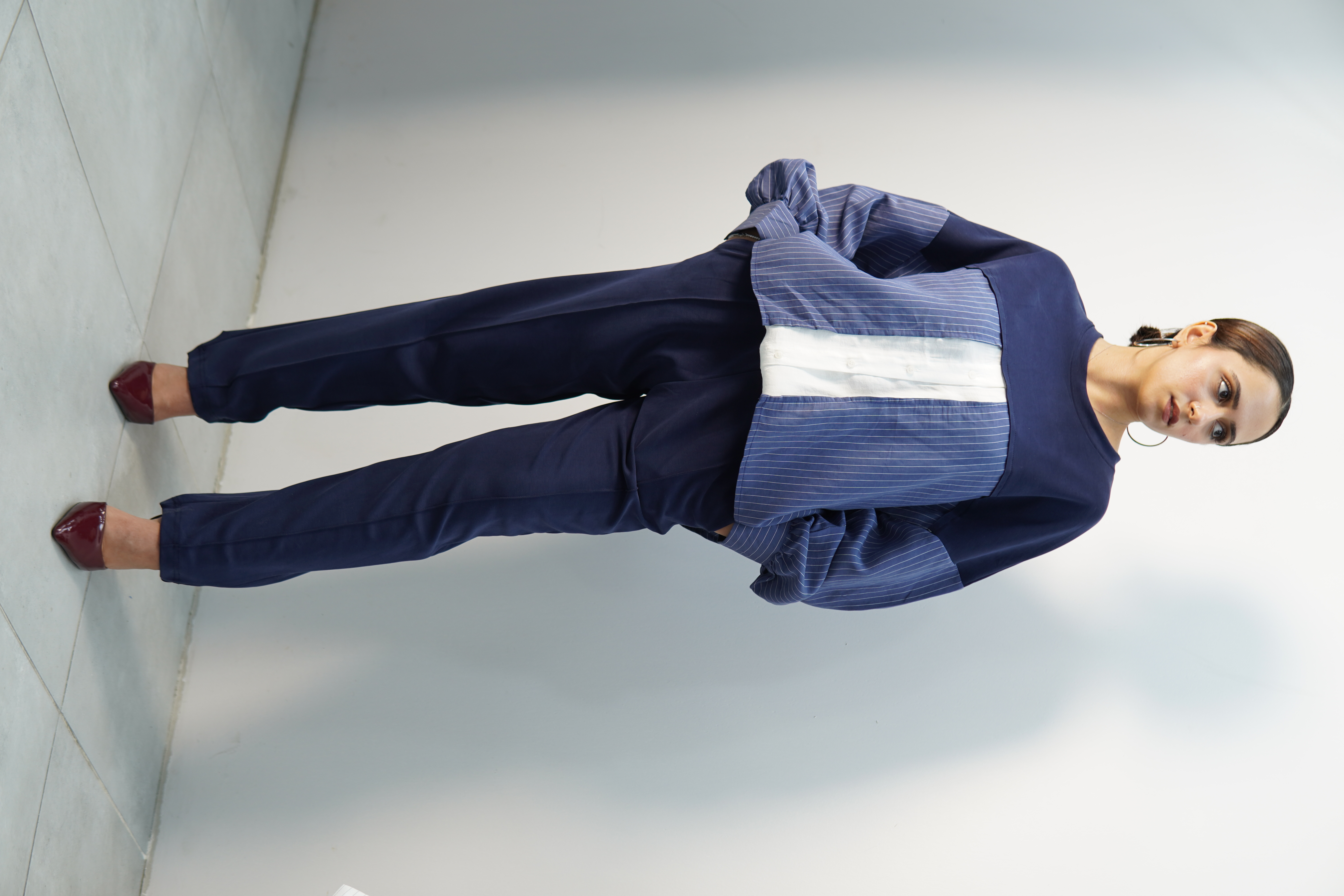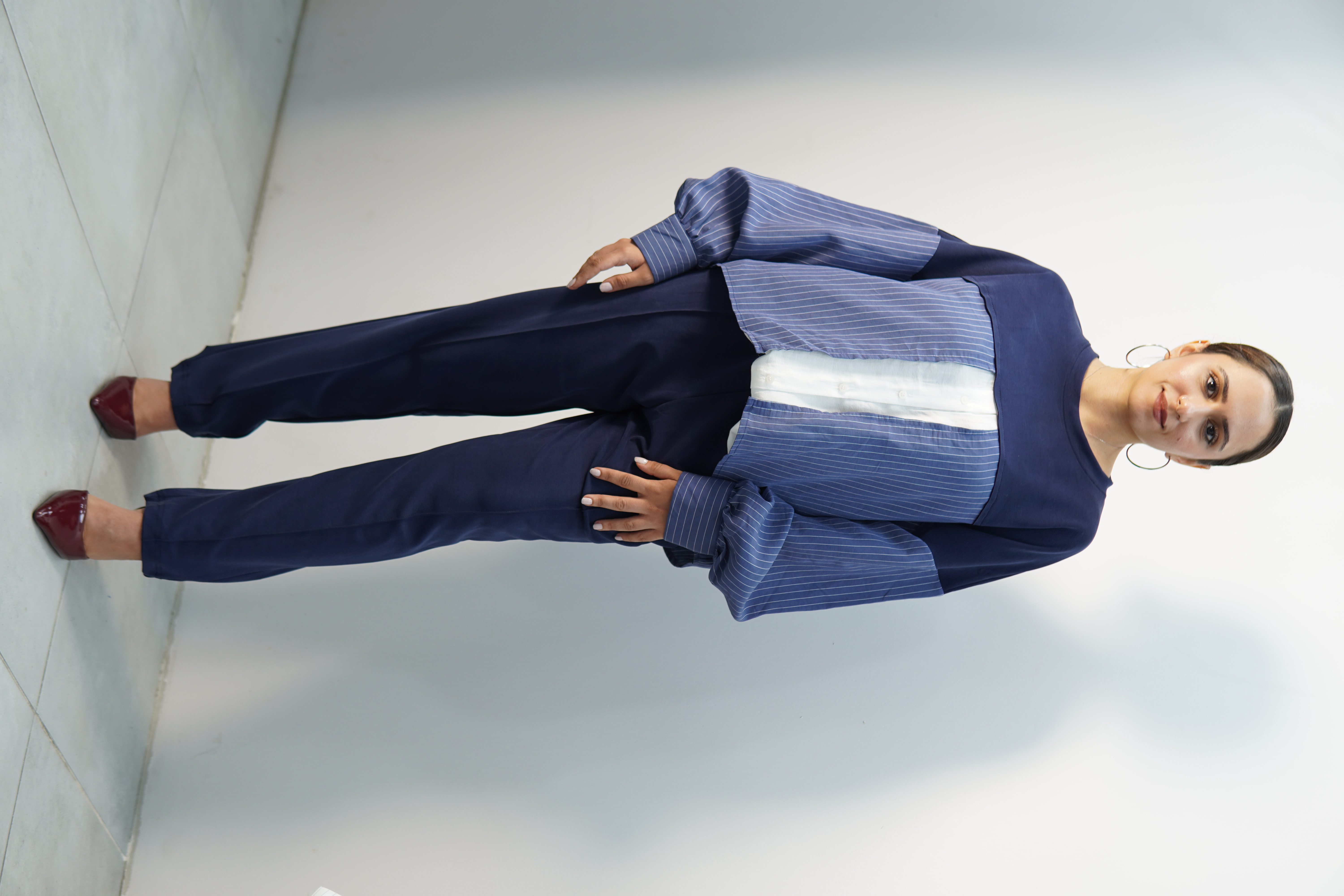 Salaş Mavi Alt Üst Takım – Beyaz Çizgi Detaylı | Zahidane Butik