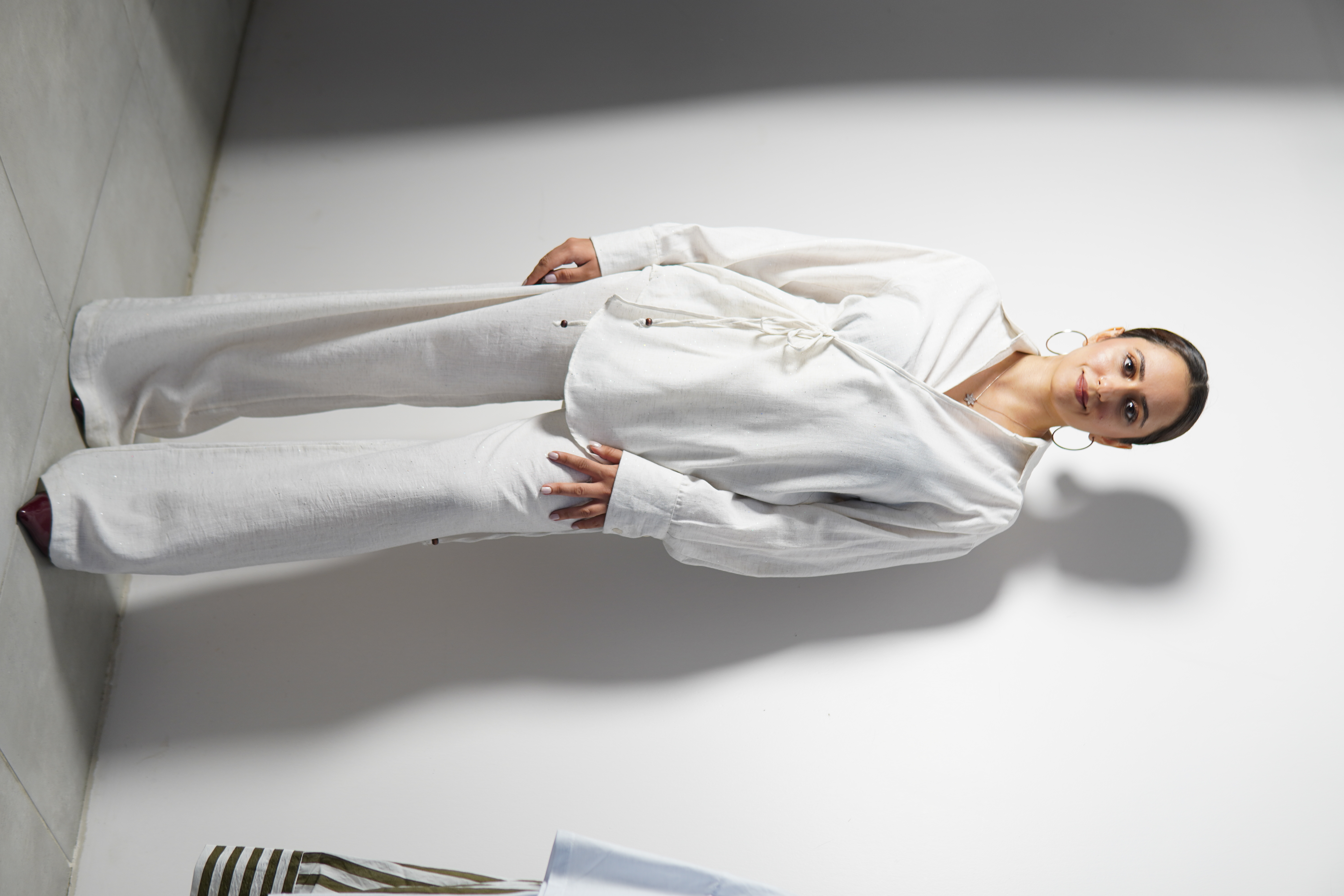 Şıklık ve rahatlığı bir araya getiren bu yandan bağlamalı keten alt üst takım, modern tasarımıyla öne çıkıyor. Üst ve alt uyumu sayesinde hem günlük kullanımda hem de özel davetlerde tercih edilebilir. Yandan bağlamalı detayı takıma zarif bir dokunuş katarken, hafif ve nefes alabilen keten kumaşı gün boyu konfor sağlar. Gardırobunuzun hem şık hem de rahat parçalarından biri olacak.