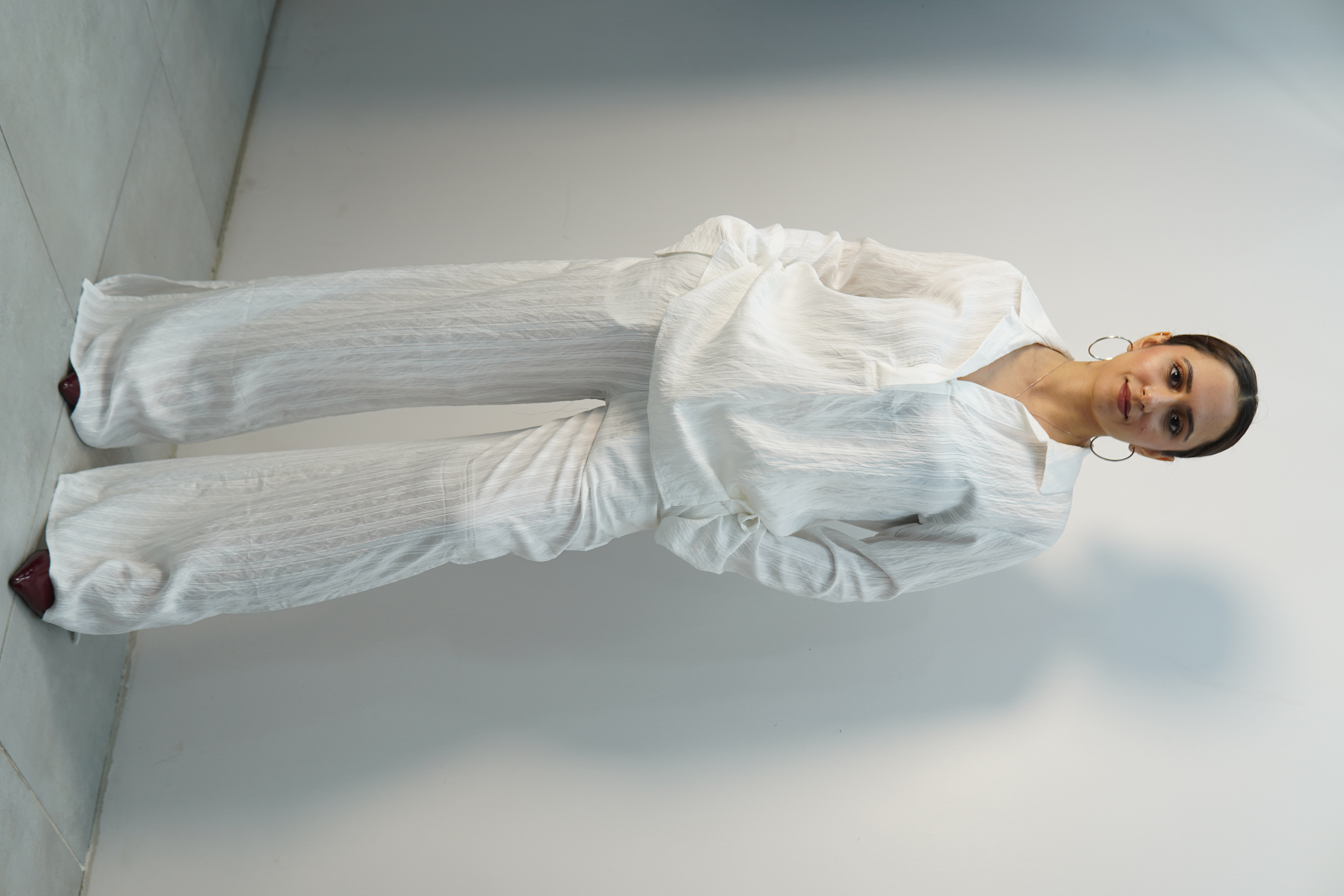 Beyaz Alt Üst Takım – Beyaz Çizgili | Zahidane Butik